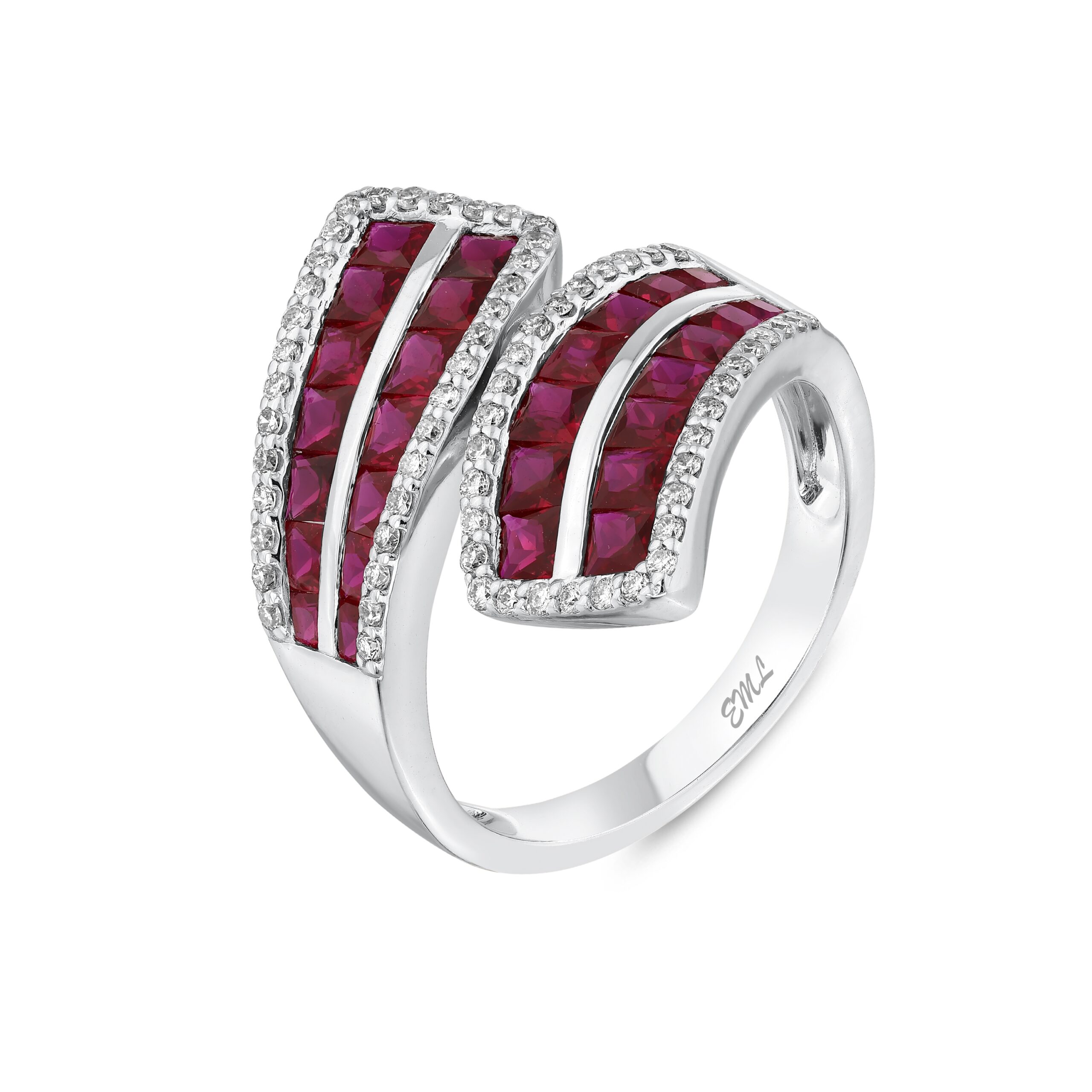 2.82 Karat Pırlanta Yakut Yüzük tasarımında 28 yakut ve 66 pırlanta kullanılmıştır. Pırlantalar yuvarlak kesimken yakut prenses kesimdir. Bunun yanı sıra yüzüğün bant kısmı 14 ayar beyaz altındır. Günlük kullanım ya da özel günlerde takılabilir. Yüzüğün üst kısmı genişler ve yan yana gelen bantlarda taşlar bulunur. Yakutların çevresi pırlantalarla sarılı haldedir. Bu da tasarımı daha etkileyici hale getirir. Sevginizi gösterme adına eşinize güzel bir hediyedir.
