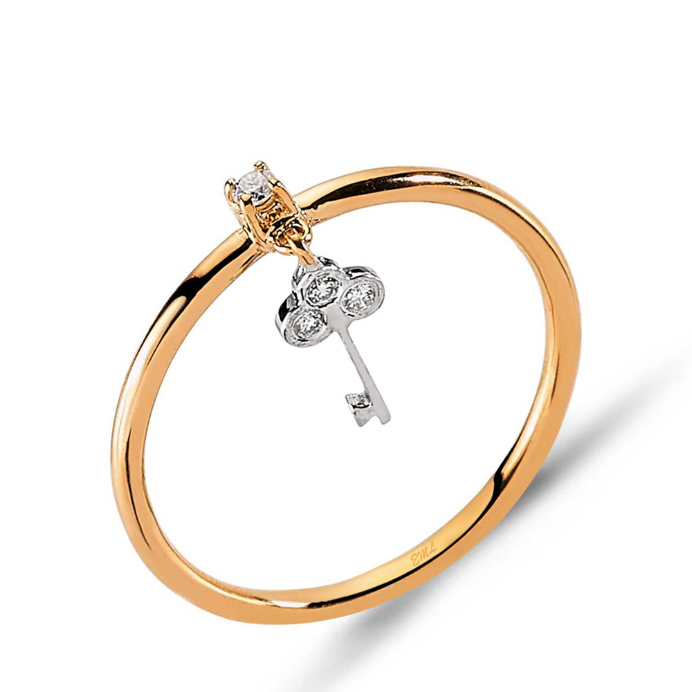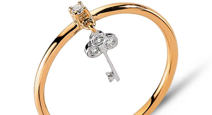 Zarifliğin ve şıklığın simgesi 0.05 karat pırlanta anahtarlı yüzük, her anında zarafetinizi taçlandırıyor. Dört adet yuvarlak kesim taşıyla tasarlandı, her biri F renk ile SI berraklıkta parıldıyor. Her detayıyla özenle işlenen mücevher, özel anlarınıza değer katarak sizi unutulmaz kılan parça.